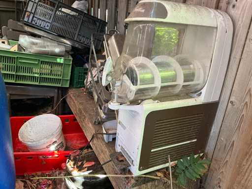Questi includono: piastra riscaldante, macchina per cuccioli di granita Frostini, tavolo, base per ombrellone e spazzaneve