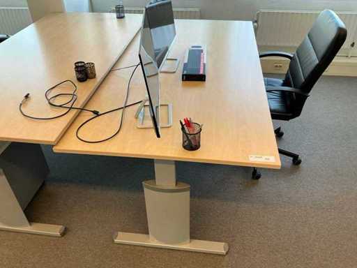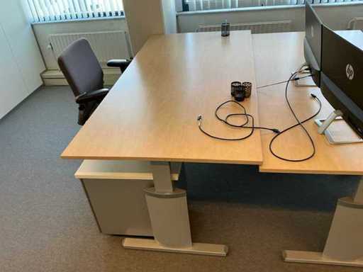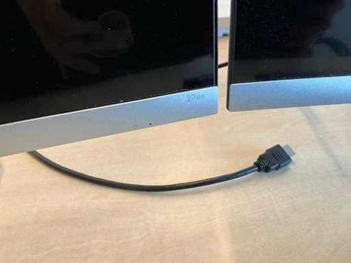 2 tavoli da ufficio 200x100cm, 2 sedie da ufficio, 1 mobile da ufficio 80x45x199cm, 2x monitor HP 27es (manca un adattador).