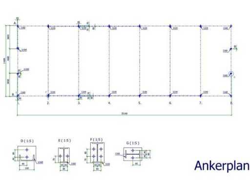 1 trave estrema: 2x colonna d'angolo I160: 2x trave del tetto I140: 2x colonna intermedia U160 e 1x trave porta U160 à 4 metri