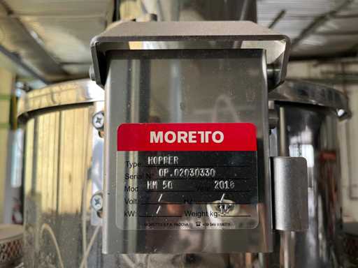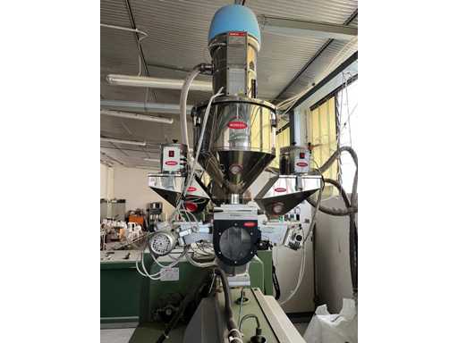 N.B: La linea è completa di n. 1 Aspiratore Moretto + n. 3 dosatori per masters (acquistato anno 2018) e l’estrusore ha vite nuova (2019) a doppia barriera diam. 60 mm, il pacco filiera comprendete: le 2 filiere – antifiliera e tappo sono nuovi.