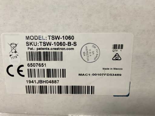 Crestron (TSW-1060-B-S), display touch screen capacitivo Progettato per il controllo senza interruzioni di varie tecnologie (Nuovo) (7x)