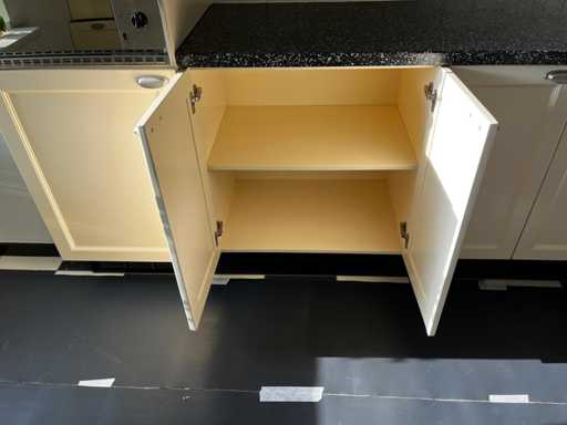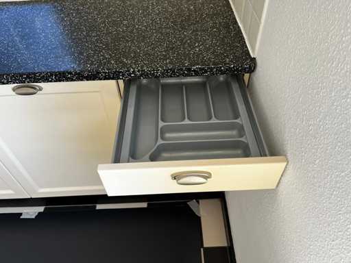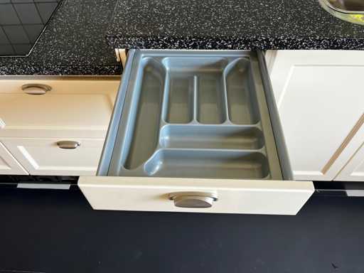 Condizione: usato; dimensioni cucina 364x60 cm; dimensioni: parete armadio: 274x60x250 cm; Si prega di notare che l'area di cottura è danneggiata; già smontato e imballato su pallet. (accatastamento, scambio o deposito per pallet); i pallet non sono inclusi; pagare un deposito al momento del ritiro o impilare i pallet; Piano di lavoro non imballato su pallet (25-2DE-02054)