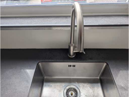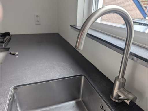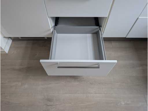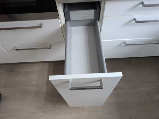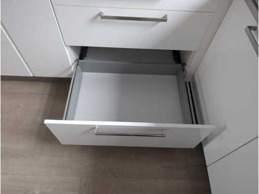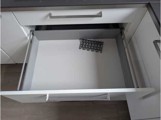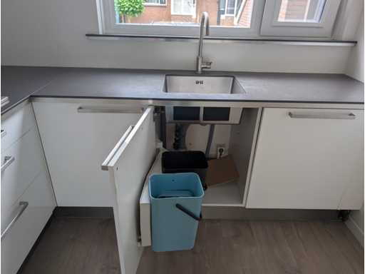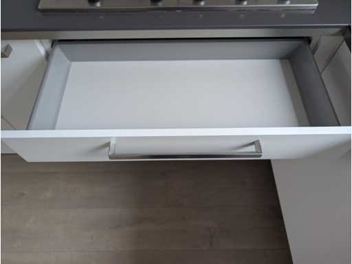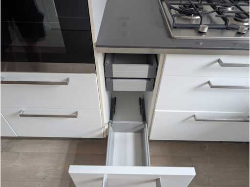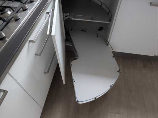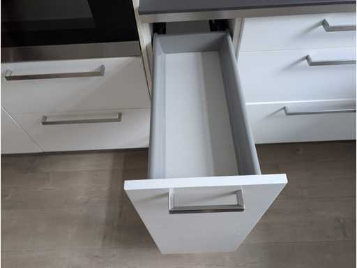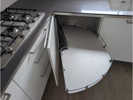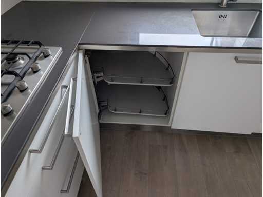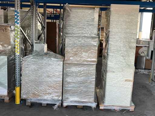 Condizione: usato; dimensioni: parte sinistra: circa 300x60x255 cm; dimensioni: parte destra: circa 254x60x90 cm; già smontato e imballato su pallet. (accatastamento, scambio o deposito per pallet); I pallet non sono inclusi; Paga un deposito al momento del ritiro o impila i pallet. nota, piano di lavoro non imballato su pallet (25-2DE-01658)