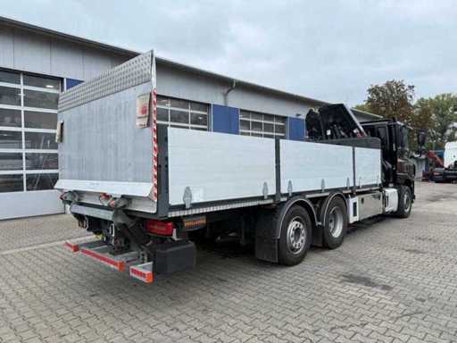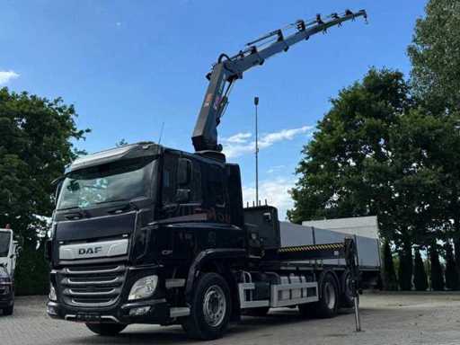 DAF CF 450 FAN 6x2, equipaggiato con pianale e gru (ad esempio HIAB 188-E-6), adatto per trasporti versatili, merci più pesanti e carico/scarico flessibili. Robusto camion 6x2 con motore e gru robusti, ideale per costruzioni, logistica, assemblaggio, trasporto e lavori pesanti. Caratteristiche: Telaio 6x2 con trasmissione FAN (robusto e stabile sotto carico) Potente motore da 450 hp — abbastanza potenza anche per carichi pesanti Piattaforma di carico + corpo gru (utile per carico/scarica in loco) Adatto per trasporti, costruzioni, assemblaggio, logistica o lavori più pesanti Questo DAF è una soluzione completa per chi desidera combinare trasporto merci e lavoro con gru, ed è abbastanza robusto per un uso intensivo.