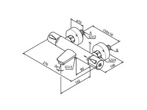 Damixa - Silhouette 745006100 - Termostato da bagno con giunzioni a S nero opaco