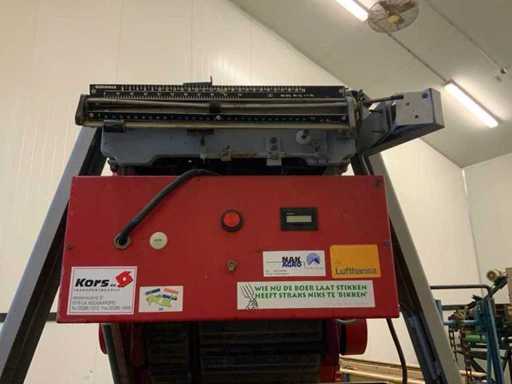 Mobile. equipaggiato con dispositivo di pesa, capacità minima. 1 kg / massimo. 50 kg, larghezza nisce 330mm, nastro di riempimento: 80mm. Dotato di valvola pneumatica.