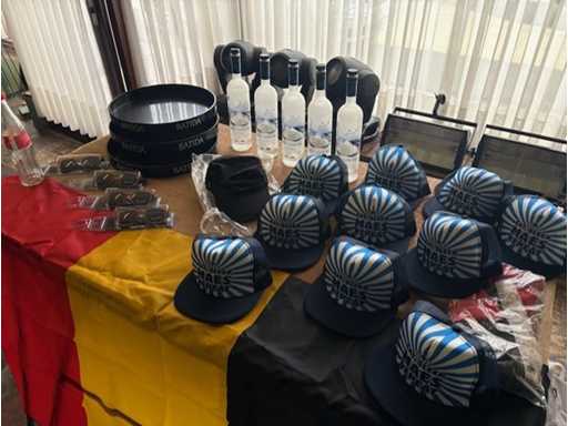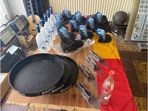 3 vaschette batida 10 x tappo meas 4x bicchieri Bacardi 1x tappo Bacardi 5x bottiglia di Grey Goose deco 1 x cola deco
