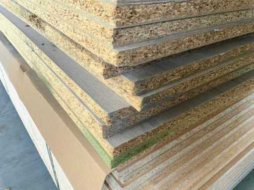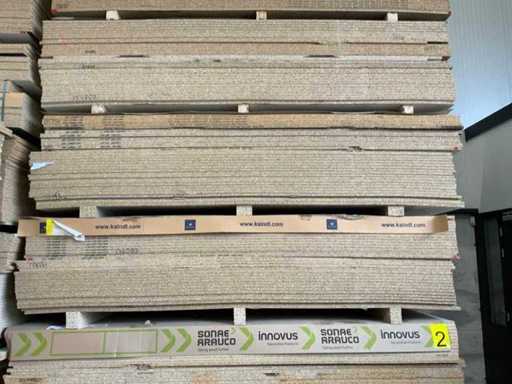 Le lastre misurano circa 2800x2070x20mm; varie specie; le dimensioni possono variare; circa 210 registri; decorazione cartone di truciolo; alcuni laminati a doppia faccia; si inserisce in 1 tautliner; 7 pacchetti; impilare con l'adesivo giallo numero 2;