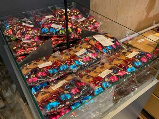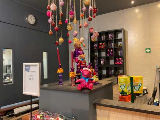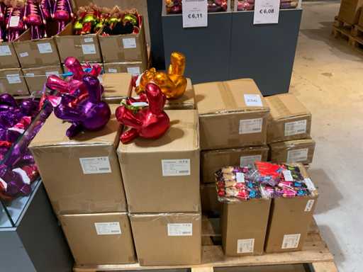 Composto da diverse figure. Contenuto su 4 pallet, compresi i ganci e il contenuto dell'armadio a scomparti, compresi i pallet, esclusi i mobili di presentazione.