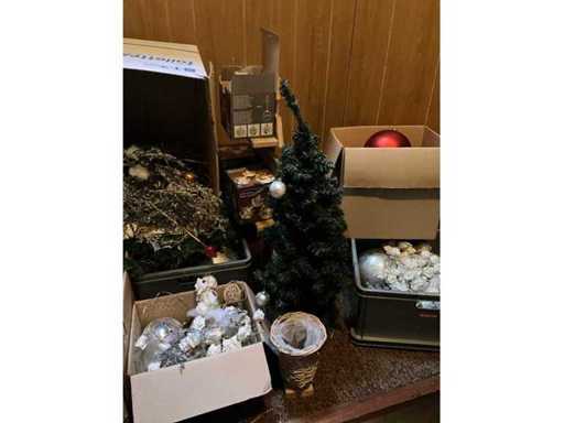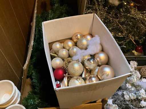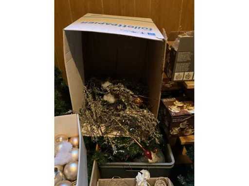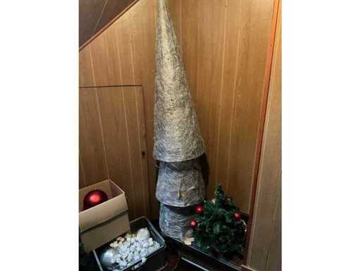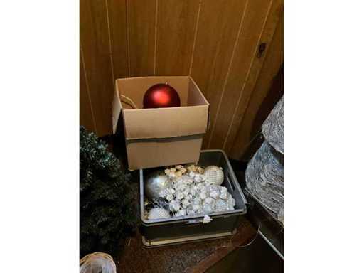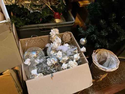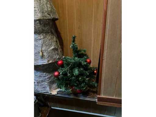 albero di Natale artificiale, palline e vasi di fiori.; Questo parcheggio si trova al primo piano e non c'è ascensore