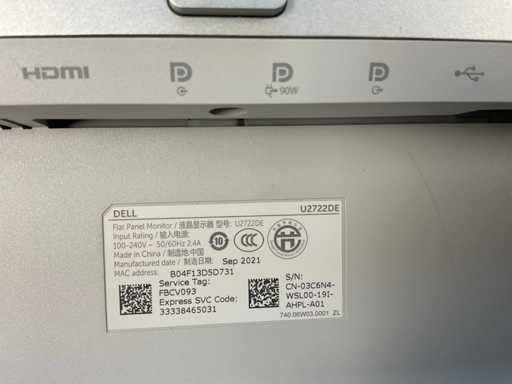 Dell (U2722DE) 27", 2560x1440 (QHD) IPS Monitor