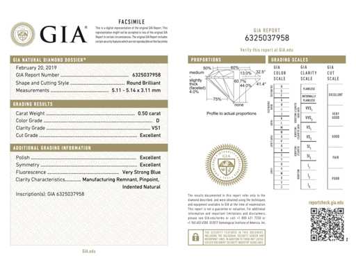 dati Diamante - 0,50 carati Diamante naturale Brilliant cut (certificato GIA)