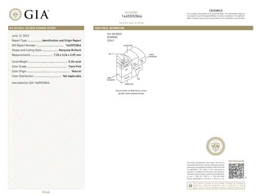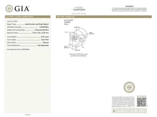 naturale Diamante: Naturale; Quantità: 1 pezzo; Taglio: taglio Marchese; Peso (carati): 0,30 carati; Colore: Rosa tenue; Certificato: GIA; Numero del certificato: 1465592846; Condizione: Nuova; Imballaggio: Scatola delle Gemme; Spiegazione: La qualità è stata presa dal rapporto relativo all'articolo. La valutazione è una valutazione di un commerciante certificato di diamanti, basata sui prezzi al consumatore; Prezzo al consumo: € 9.900