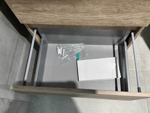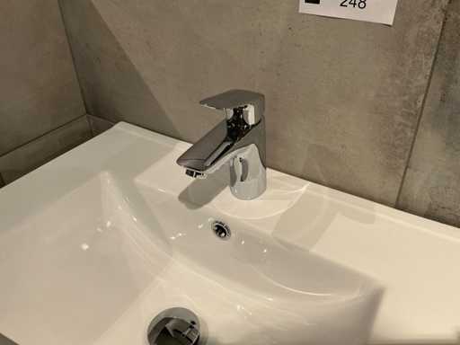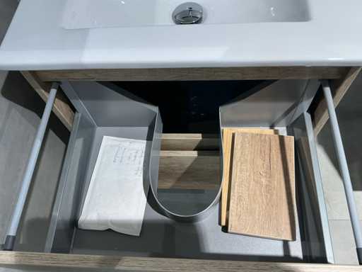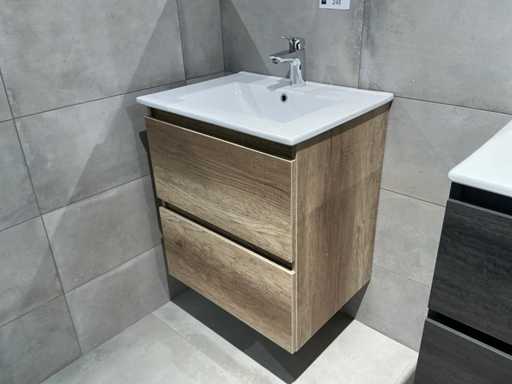 Consiste in lavandino Basic Line 60cm, specchio Basic Line 60x60cm, sottotavolo in Quercia Scotch 60x45x60cm, rubinetto miscelatore Hansgröhe Logis 100.