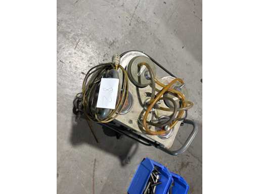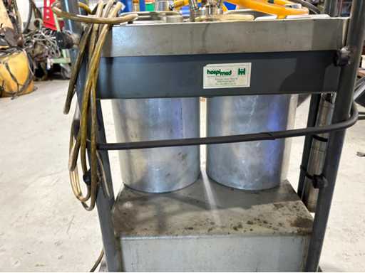 Doppio aspiratore Hospimed in acciaio inox su telaio rotante – Tecnologia medica / Dispositivo di aspirazione per officina (usato)