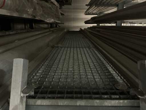 Equipped with landing grid and stairs, Without content, rack is welded to poutrels, buyer must remove the rack by means of his own tools, see photos