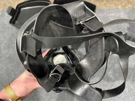 Dräger FPS 7000 respiratore integrale con grande obiettivo panoramico e connessione a baionetta (RA). Elastici e maschera interna disponibili, nessuna lacrima riconoscibile. Segni d'uso visibili, tecnicamente funzionali secondo le specifiche del cliente. Consegna include una scatola di plastica robusta con cinghia da trasporto.