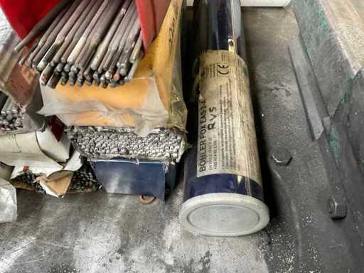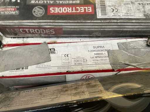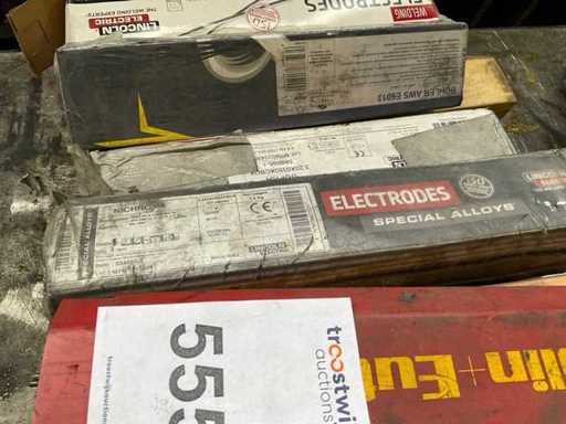 Vari tipi e dimensioni di elettrodi di saldatura, alcune scatole sono state aperte