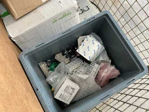 Vari materiali elettrici in scatola a reticolo