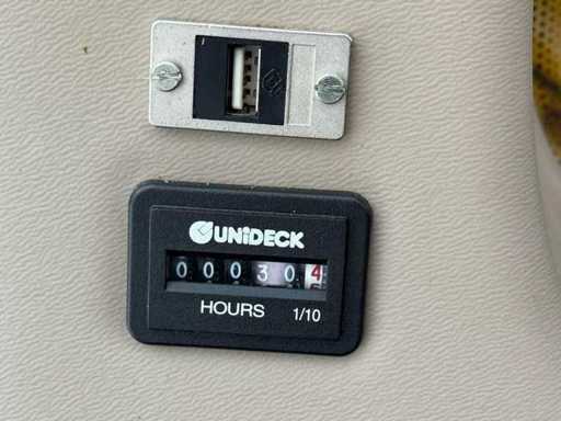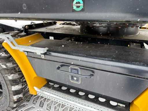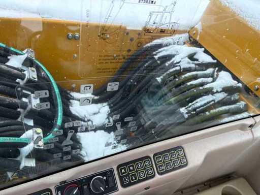 Macchina dimostrativa, livello di emissione: Tier 4, macchina base con equipaggiamento aggiuntivo, lama scorrevole posteriore 2750 mm, supporto di presa anteriore, pneumatici speciali CALIBRE 315/70-22.5, braccio a divano 2500 mm, linea di ritorno senza pressione 1" a sinistra, opzione idraulica ZV2 (0-100 lt.), Guida a joystick tramite rulli. Cambio tra operazioni ZV1/Z1 può essere usato per la funzione di presa, tubatura per SWE idraulico, telecamera aggiuntiva sul cofano, incluso attacco rapido meccanico, sistema Lehnhoff MS10