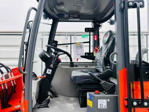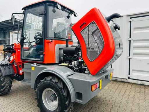 altezza massima di sollevamento 2980mm; velocità di guida: 22 km/h; 4WD; Cabina di lusso completamente chiusa; Dotato di 1 porta; finestra apribile; sedile con sospensione; radio; ventilatore e riscaldatore; Cabina inclinabile per una manutenzione semplificata; secchio per escavatore e forcelle da pallet da 0,53 m3; dimensione complessiva con il secchio dell'escavatore; dotata di sistema di cambio rapido; Si prega di notare che questo non compare nella foto;