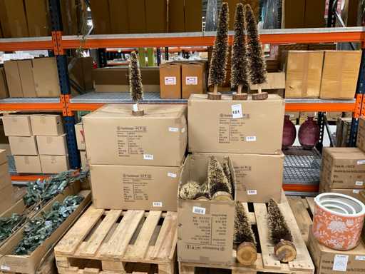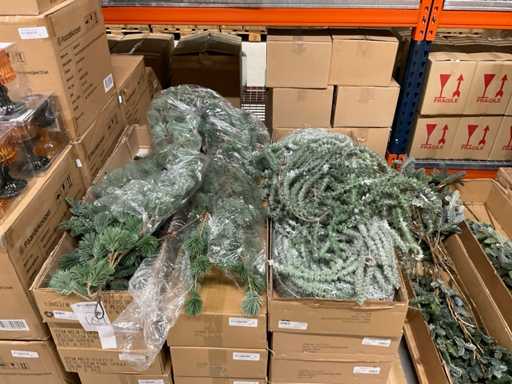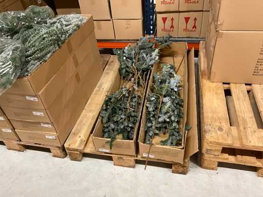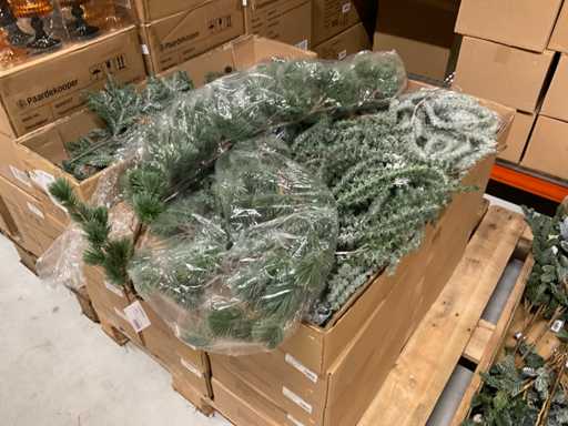 Contenuto su 4 pallet composti da diversi tipi di rami e decorazioni natalizie, compresi i pallet.