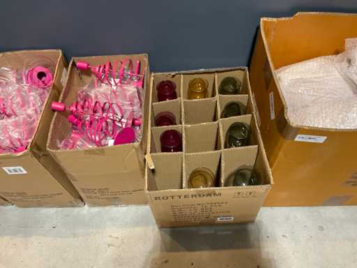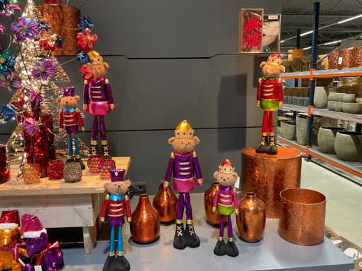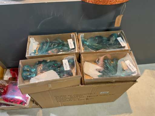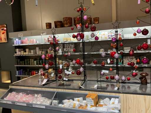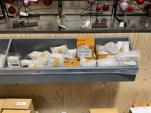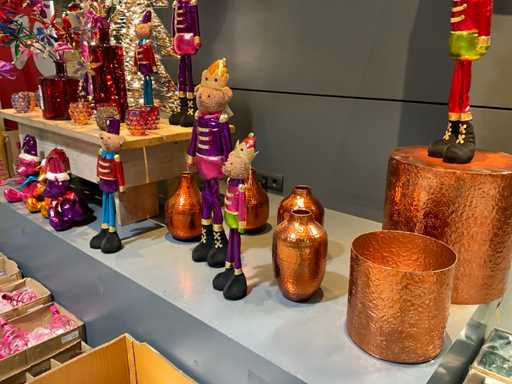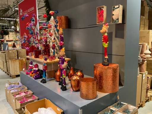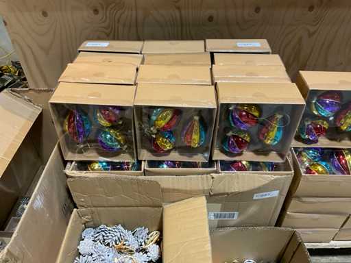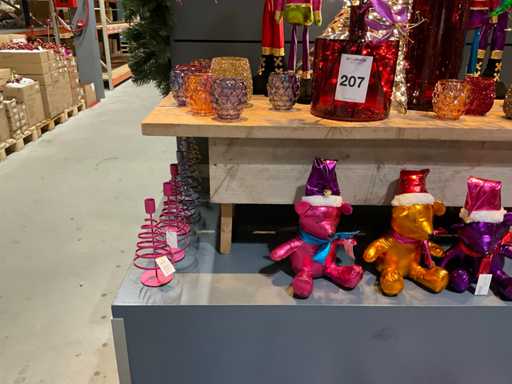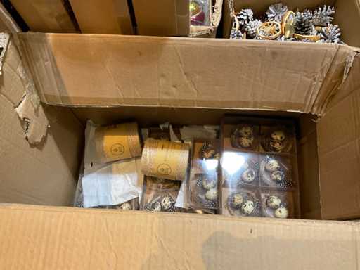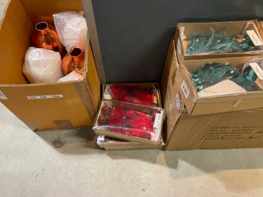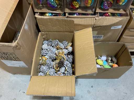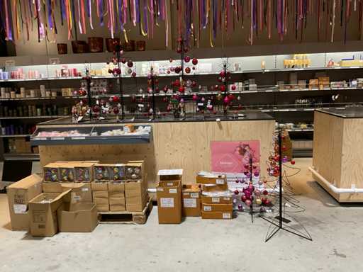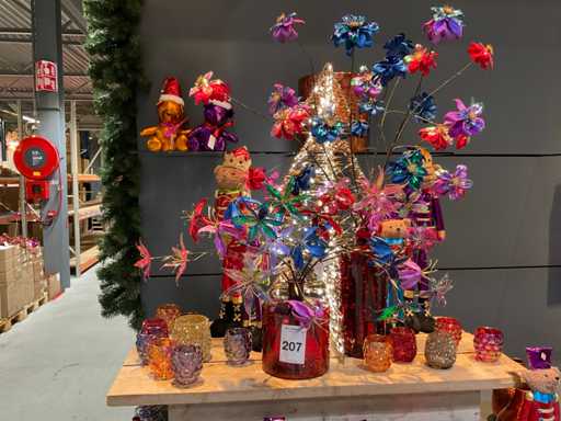 Contenuto di mobili e scatole composto da decorazioni natalizie, portacandele e portacandele. Arredamento esclusivo.