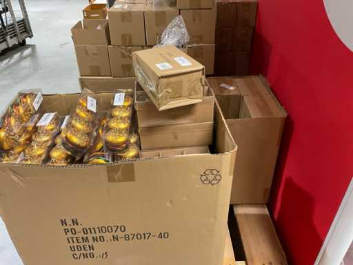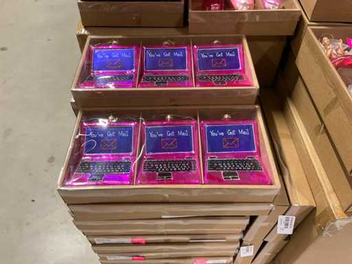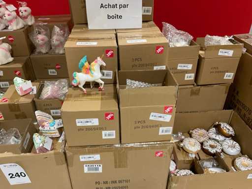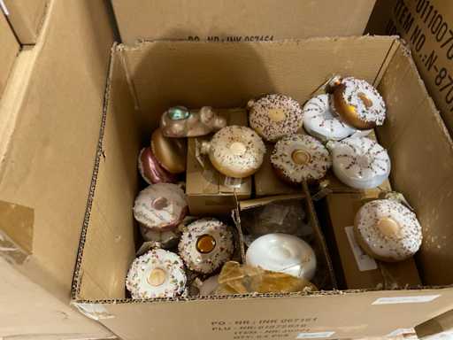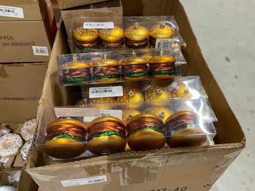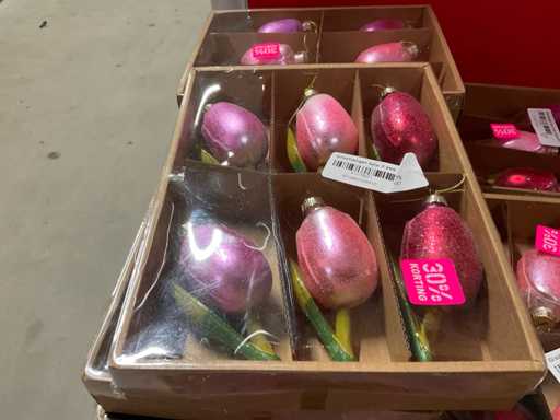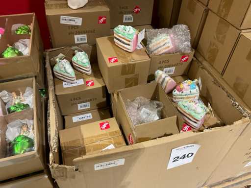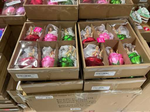 Composto da diverse dimensioni e colori di palle di Natale. Contenuto su pallet.