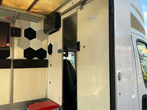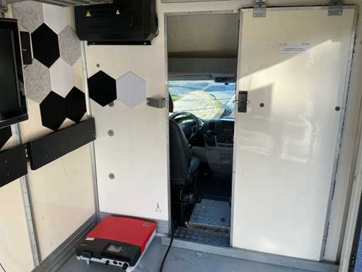 Dotato di porta laterale elettrica; persiana a ruvola manuale con rampa (larga 90cm); 3 pannelli solari sul tetto; ruota di scorta; televisione (Philips); l'inverter SMA "Sunny Boy"; modulo del sistema di ricarica ''Micro Vet Battery Charger NG9'' difettoso (è disponibile un nuovo modulo per sostituirlo, vedi le immagini, deve essere sostituito)