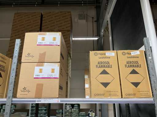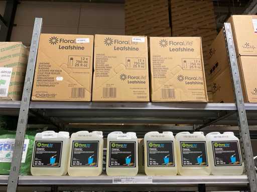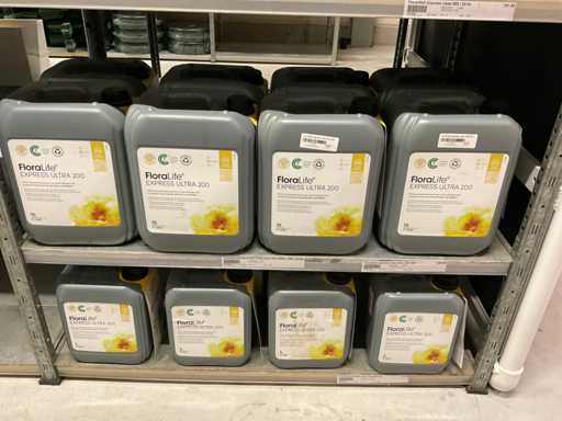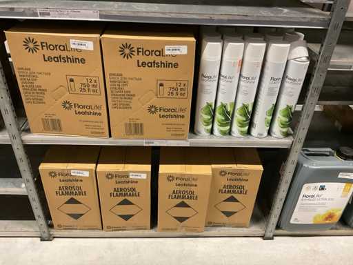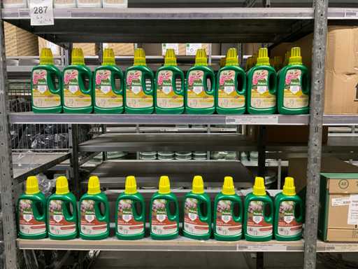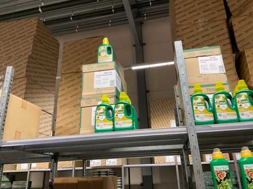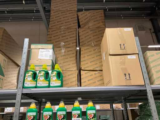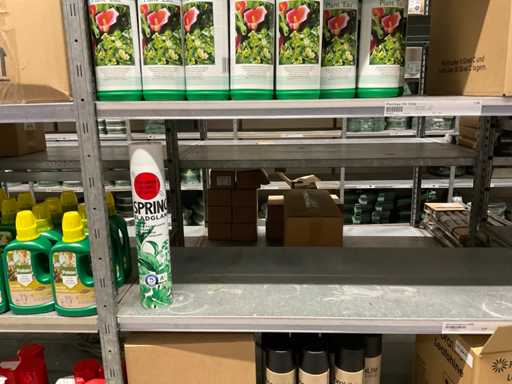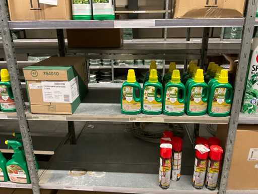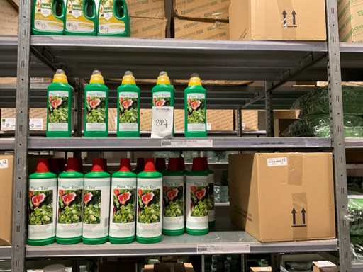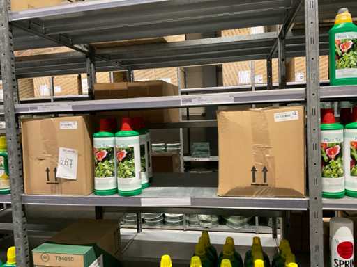 Contenuto di 6 sezioni di rack composto da diversi tipi di nutrimento per piante e spray fogliare. Escluso rack.