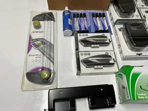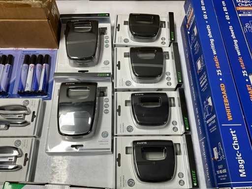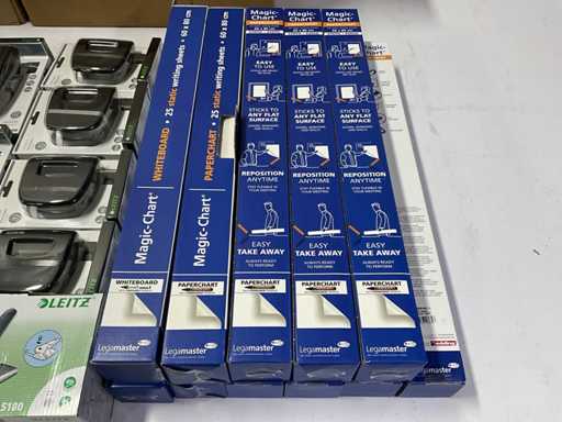 Forniture per lavagna, perforatrici, graffette, tabella magica.