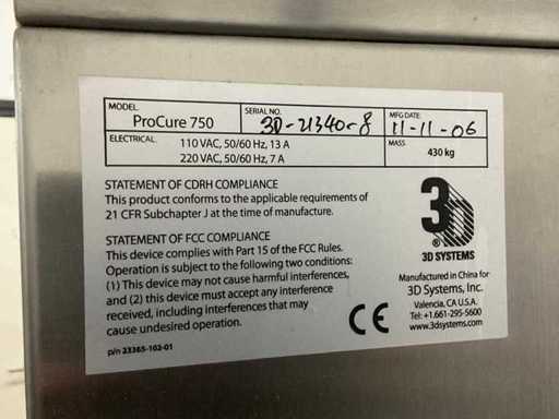 Forno termico a infrarossi ProCure 750 3D Systems 2006