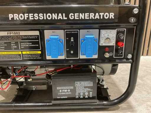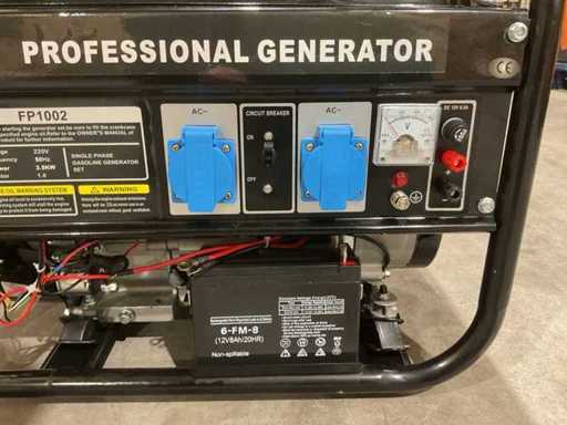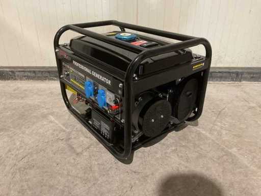 Potenza: 3,5 KW; motore benzina 4 tempi; raffreddato ad aria; Batteria; Avviamento elettrico; 2 prese da 230V; fusibile; Livello di rumore: circa 68–72 dB(A) @ 7 m; Telaio in tubi d'acciaio; Ammortizzatori di vibrazione; Inutilizzati nella scatola