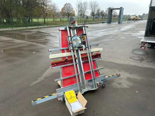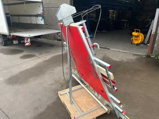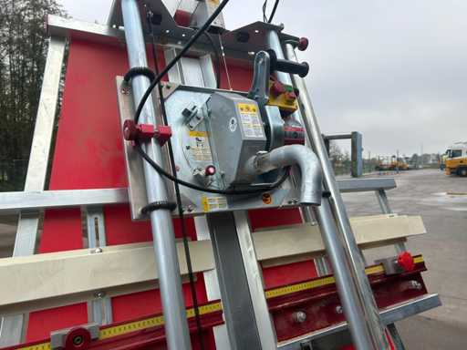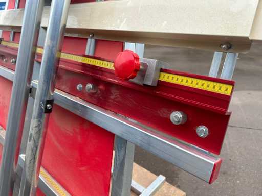Disposizione verticale con guide guida, bilancia e unità sega mobile.