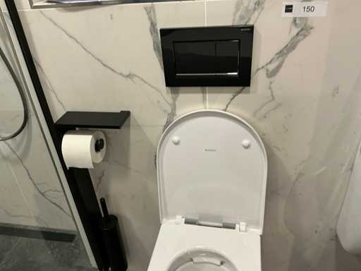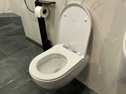 Composto da un armadio a parete Geberit Acanto senza bordo con coperchio morbido, orinatoio Geberit 300 92 con coperchio, dotato di accessori per WC, il pannello di controllo è un manichino. Attenzione! Senza un serbatoio integrato.