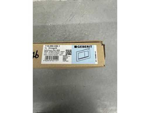 Geberit - Omega30 - Piastra di controllo quadrata, a 2 pulsanti a filo, striscia decorativa cromata, piastra di copertura e pulsanti neri