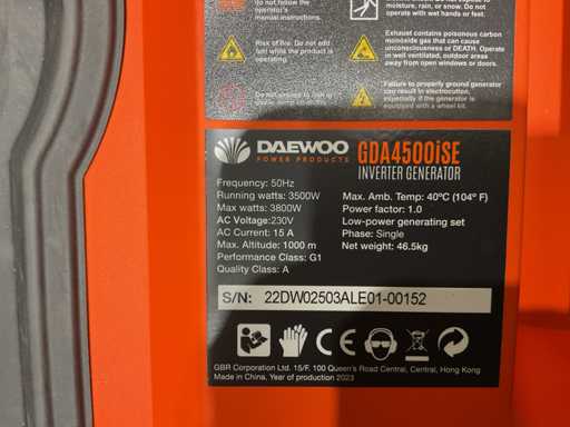 Dotato di candele chiave; imbuto; 2 x 230v; 1x collegamento DC 8A da 12v; USB 5V 1.0A/2.1A; avviamento elettrico; Inutilizzati nella scatola