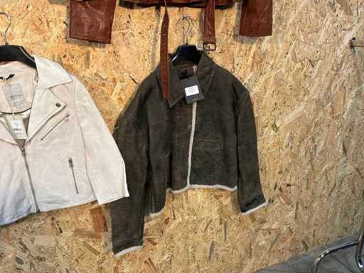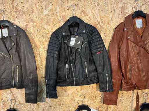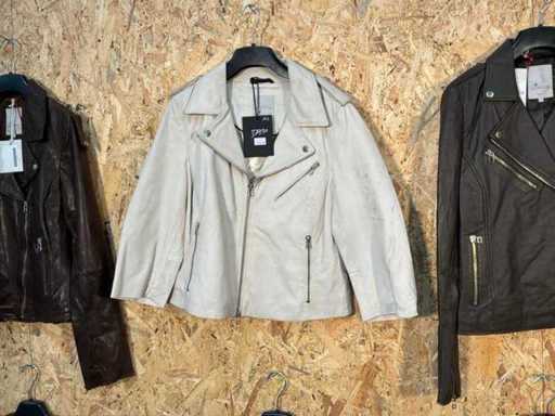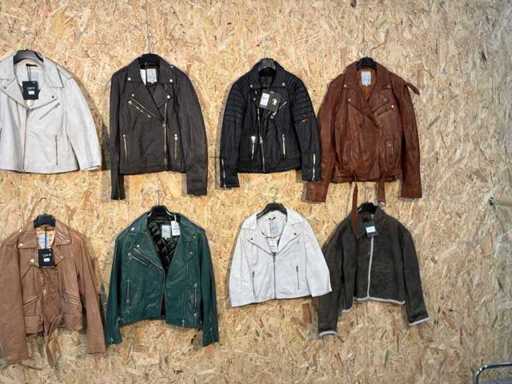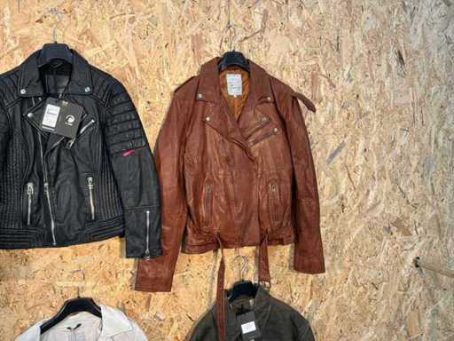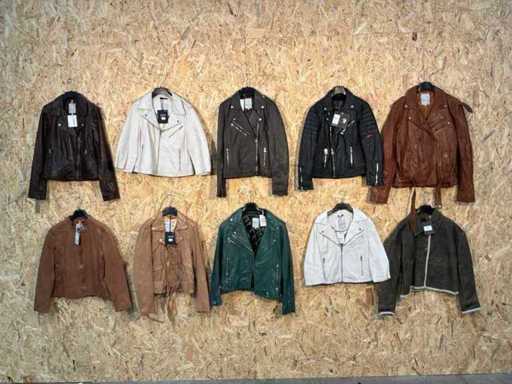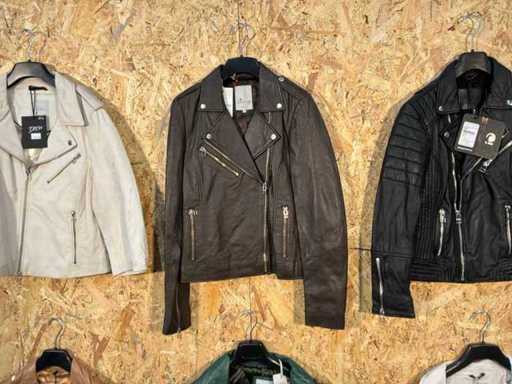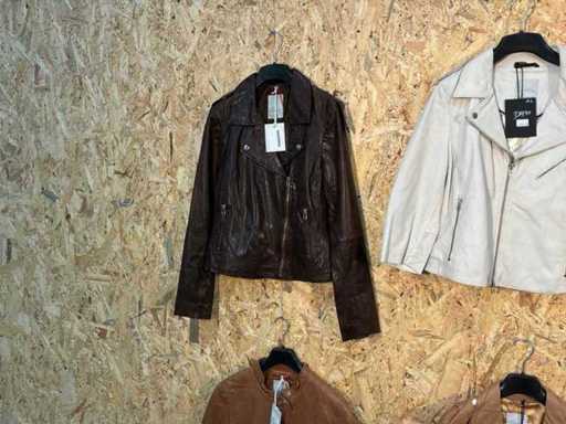 Varie giacche di pelle femminile di diversi modelli, colori e taglie. Addisi appendiabito. Se gli articoli hanno etichette di sicurezza, verranno rimosse prima del giorno di consegna.