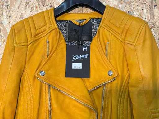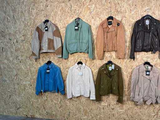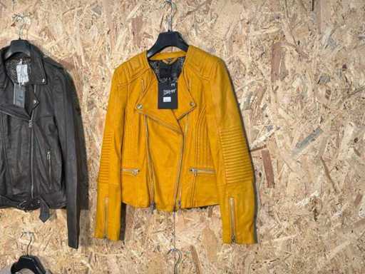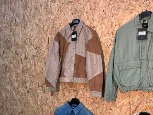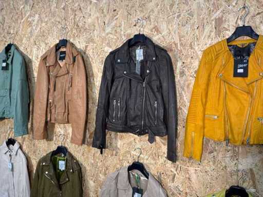 Varie giacche e camicette in pelle per uomo e donna in diversi modelli, colori e taglie.