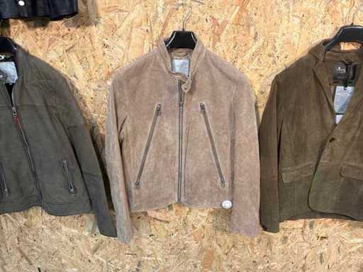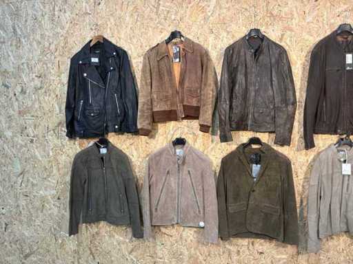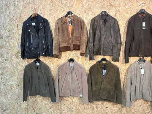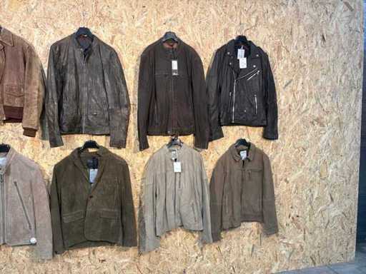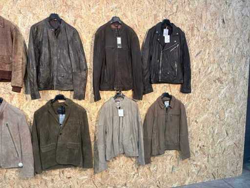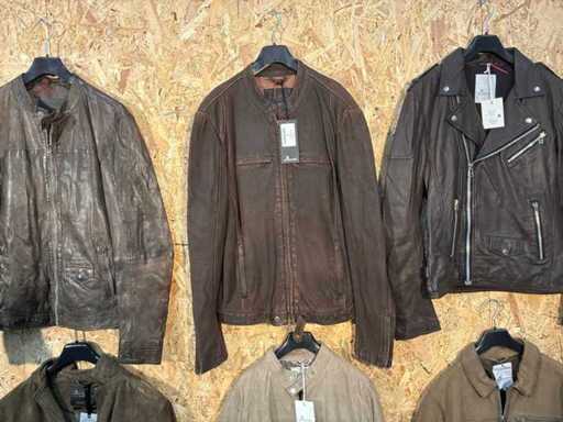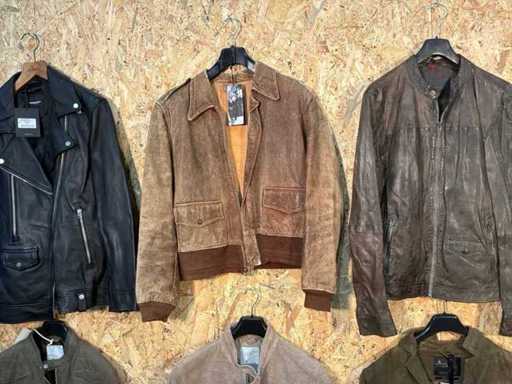 Vari giacche e giubbotti di pelle maschile in diversi modelli, colori e taglie.