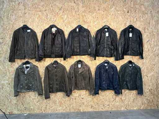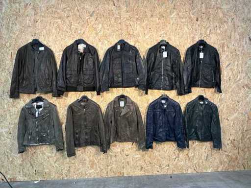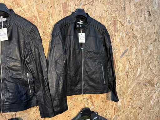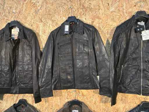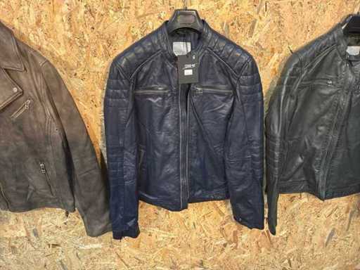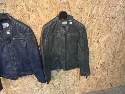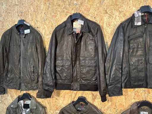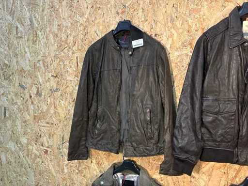 Varie giacche di pelle maschile in diversi modelli, colori e taglie.
