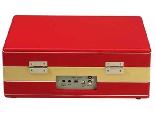 Modello retrò; rosso/beige; portatile; radio AM/FM; Uscita USB