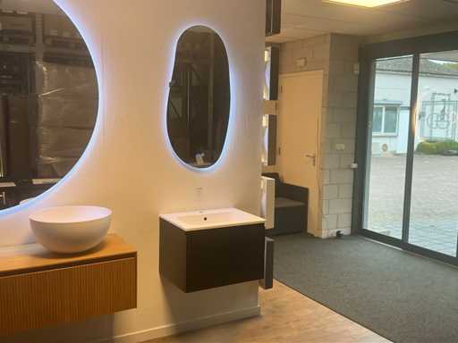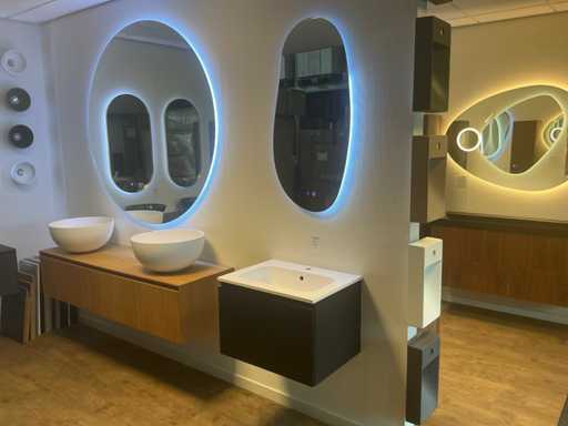 Consiste; 1x mobile base 60x40cm; 1x lavabo in marmo fuso 60cm; 1x Specchi da bagno dotati di illuminazione (dimmerabile) e specchio riscaldante 50x100cm