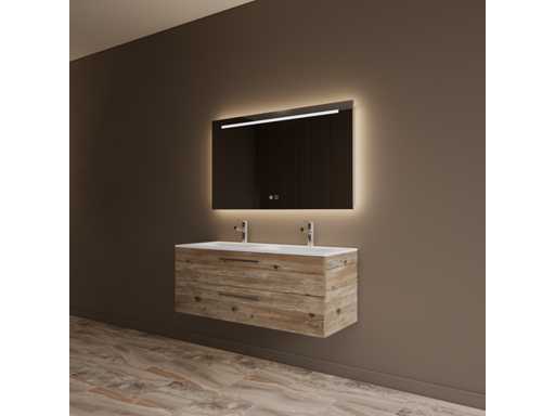 Consiste; 1x Specchio 120 x 70cm; 1x Mobile base 120 Lunghezza x 55 Altezza x 45 cm Profondità; Lavabo 120 x 45cm; 5x pacchetti;