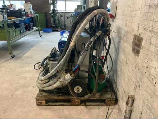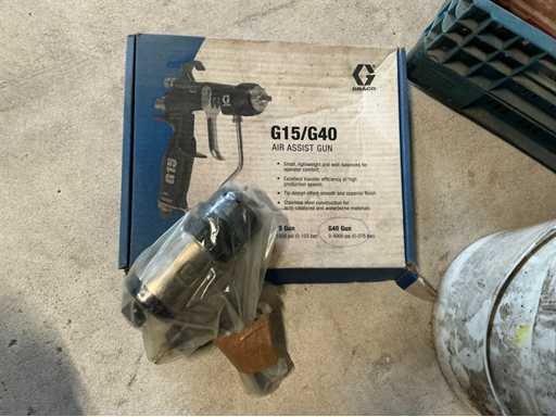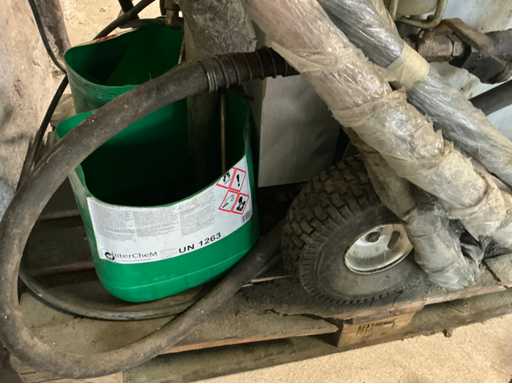 Include la pistola ad aria compressa Graco G40 0-275 bar e la macchina per i pezzi di ricambio. La macchina può essere utilizzata per la polieurea e vari altri tipi di irrorazione.