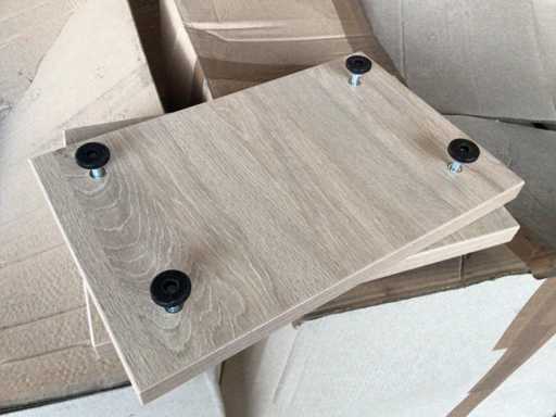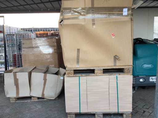 Grande lotto di cartone trucierato impiallacciato su 4 pallet, in parte montati su piedi, dimensioni circa 46 x 21 cm, spessore 25 mm