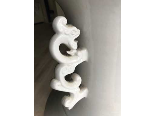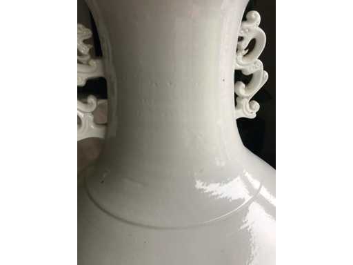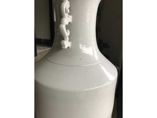 Grande vaso in ceramica Blanc de Chine. Alto 90 cm. Bianco monocromatico. Pesante. Manici di drago. Unico
