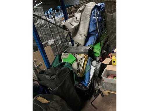 Grandi quantità di borse da trasporto, castelli gonfiabili e teli a terra