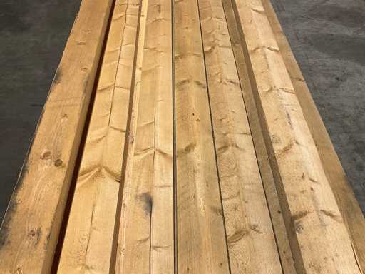 Travi di abete grezze, di dimensioni di 420 x 12,5 x 6,3 cm ciascuna.