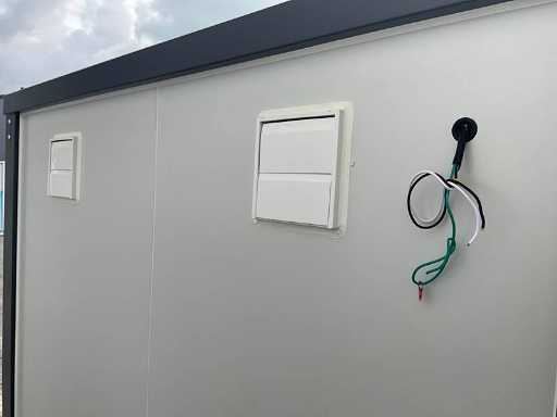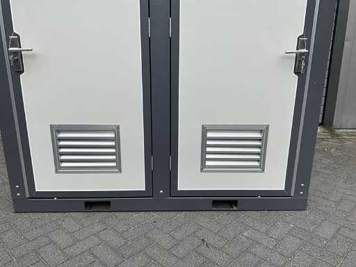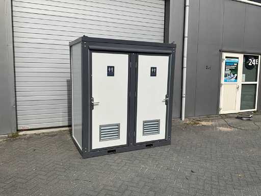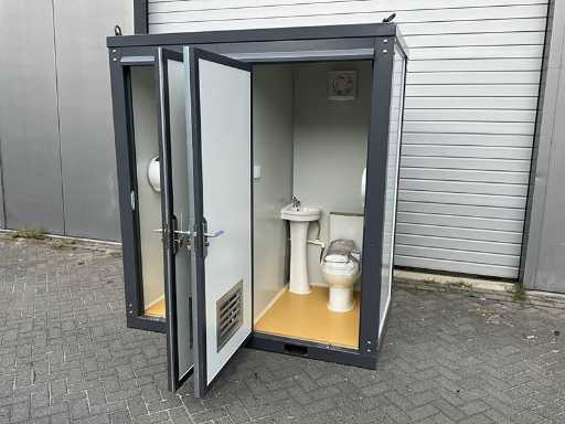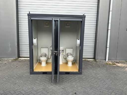 Dotato di 2 servizi igienici, 2 lavandini, scopini, portarotoli, estrazione 220v, porte con serratura, con chiavi, occhielli di sollevamento, inutilizzato